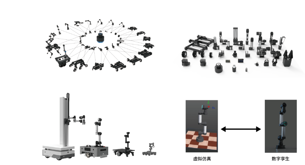 多构型、多场景、全开源、机电一体化关节、机器人工作站、机器人数字孪生